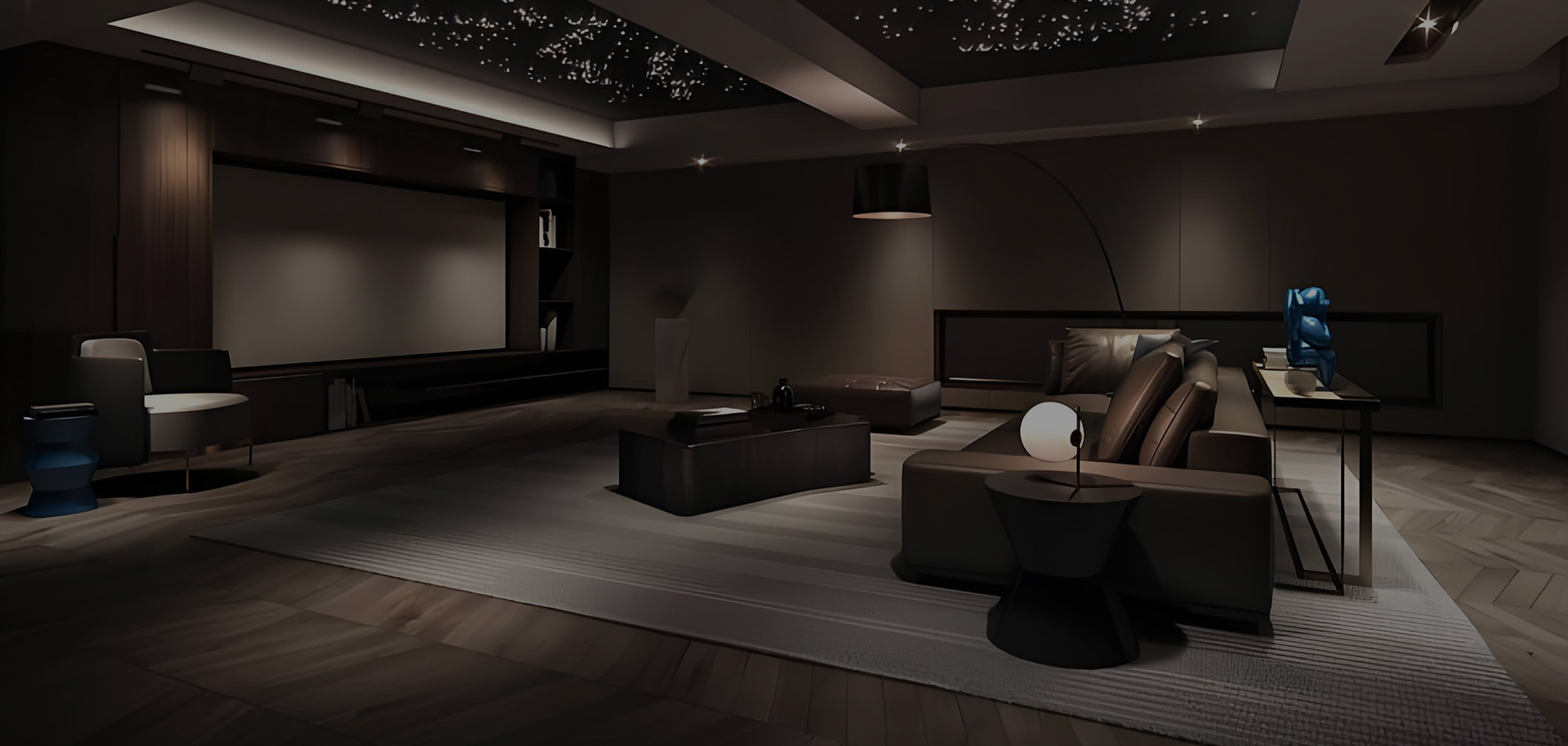 这个私家影院位于一座豪华别墅内,总面积约为100平方米的地下室空间。家庭影院音响采用高保真杜比全景声音响系统,打造沉浸式的音频体验,为了实现音视频的协同工作,我们选用了影院级处理器和放大器来优化画面质量和声音效果。
